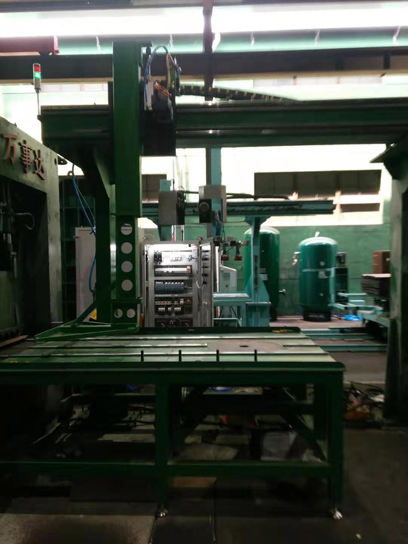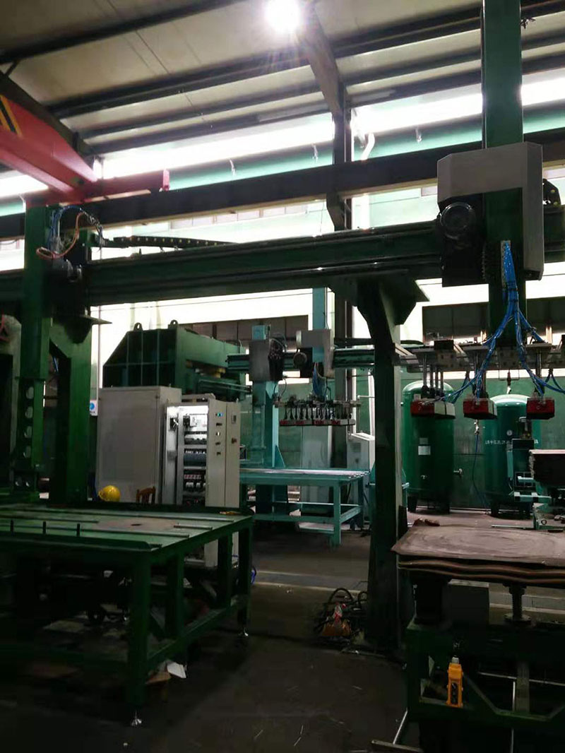 Non-standard automation project of cutting material workshop of Ningbo Bowei Alloy Material Co., Ltd., sucking, pushing and automatic cutting of raw material copper plate.